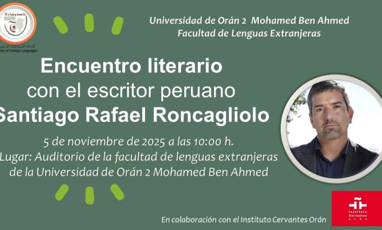L’Université d’Oran 2 Mohamed Ben Ahmed accueille ce mercredi à 10h00, à l’auditorium de la Faculté des Langues Étrangères, une rencontre littéraire avec l’écrivain péruvien Santiago Roncagliolo, l’une des voix majeures de la littérature latino-américaine contemporaine.