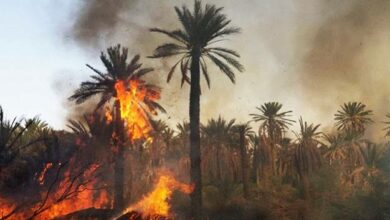 Incendie d’une oasis de palmiers dans les jardins du Palais El Hadj à la commune d’Ouakrouth à Timimoun