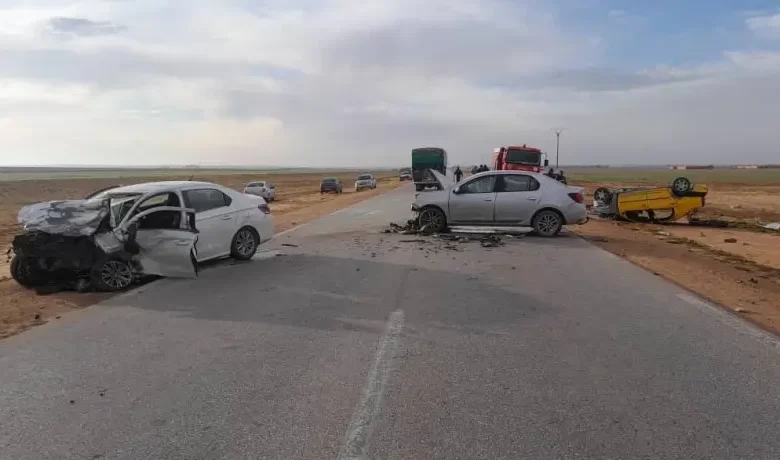 L’accident a impliqué une collision frontale entre deux voitures de marque Renault R4 et Renault Symbol, toutes deux immatriculées dans la wilaya de Djelfa. Il s’est produit sur la route nationale n°1, dans la région de Oued Seder.