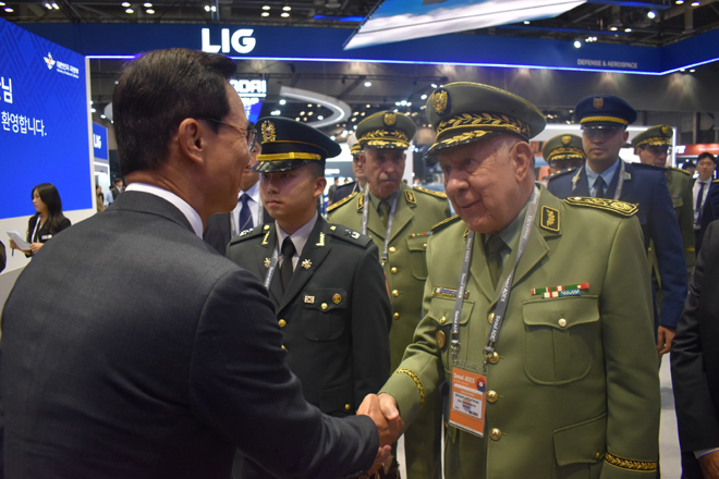 La visite a débuté par le stand de l’entreprise coréenne LIG, où le Général d’Armée et la délégation qui l’accompagne ont suivi une présentation sur «les dernières innovations de l’entreprise et les solutions qu’elle propose dans le domaine des systèmes de défense aérienne et des technologies de pointe».