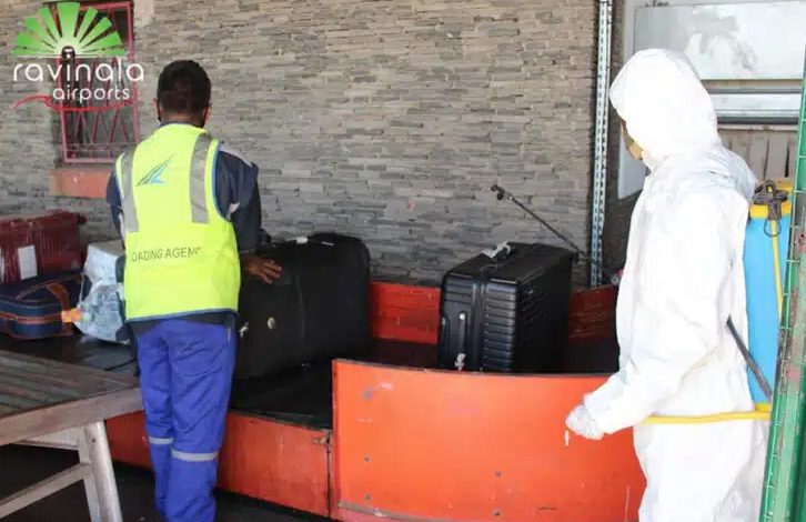 Les mesures incluent le port du masque, le respect d’une distanciation d’un mètre, le lavage des mains avec du gel désinfectant, et la désinfection des bagages.
