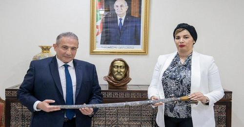 Mme Mouloudji a reçu, lundi au siège du ministère, l’ambassadeur d’Algérie à Paris qui lui a remis l’épée de l’Emir Abdelkader, une pièce archéologique à haute valeur historique qui était programmée à la vente aux enchères à Paris (France) et a été acquise en date du 8 octobre 2023 par les services de l’ambassadeur de l’Algérie à Paris en coordination étroite avec les services du ministère de la Culture et des Arts, qui ont découvert l’opération de vente programmée à travers la cellule de veille créée récemment au niveau du ministère, pour le suivi et la restitution des biens culturels nationaux à l’étranger, souligne le communiqué.