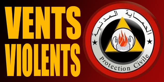 La direction générale de la Protection civile a appelé, mardi dans un communiqué, les citoyens à respecter les consignes de prévention suite à la publication dans la matinée d’un bulletin météorologique spécial (BMS) faisant état de vents forts sur plusieurs régions, afin d’éviter les accidents domestiques et les accidents de la circulation.